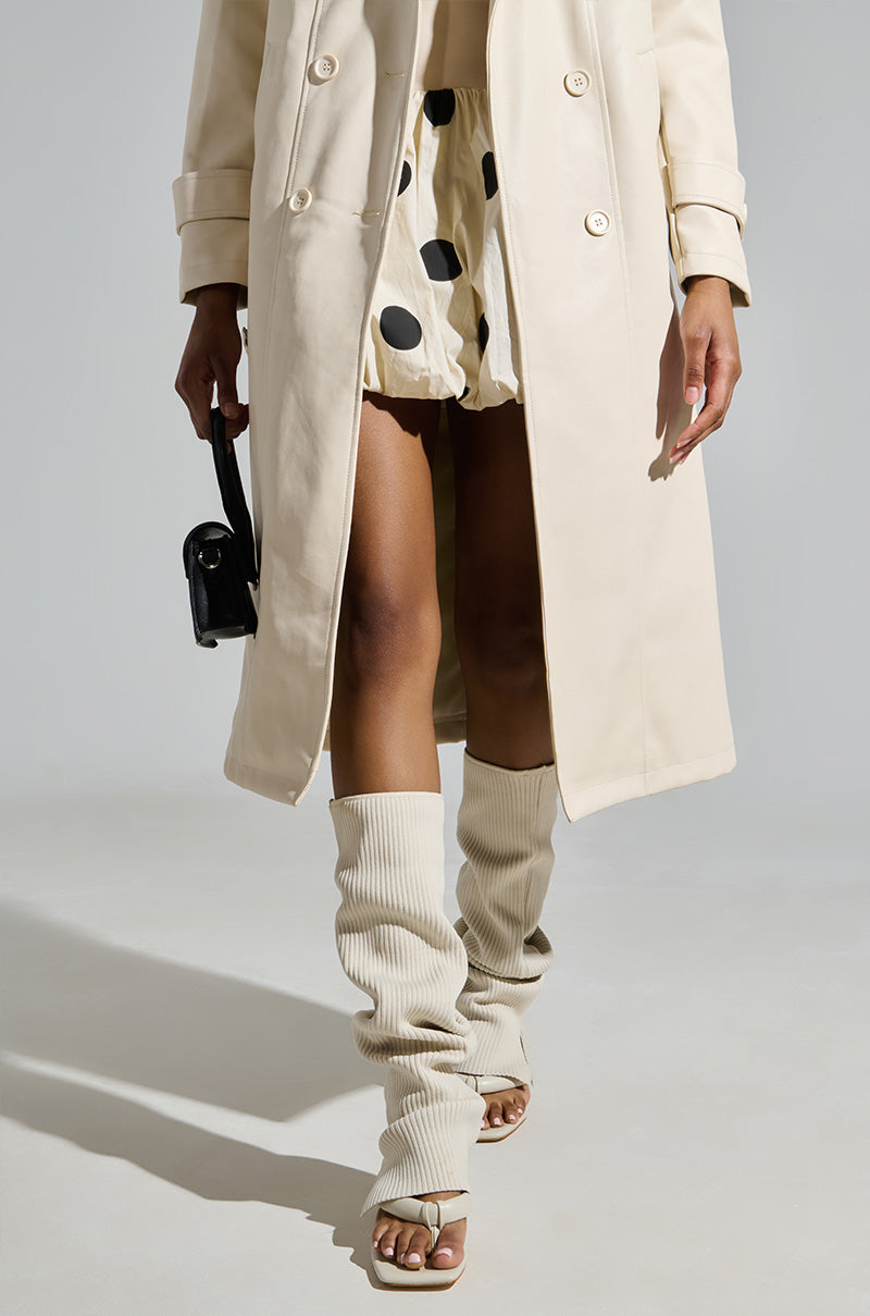 Your Insta feed will be poppin' when you wear The AZALEA WANG Sapphira Bone Sandal. These trendy sandals are brought to you in a faux leather upper and feature an open square thong toe. puffy toe bands. a kitten heel. a Comfort Cushion insole. and an easy. pull-on design. They're complete with a ribbed. stretchy knit mid-calf shaft with an elasticized top hem for a customized fit. and a slit at the bottom hem that partially covers the top of the foot and back of the ankle.
